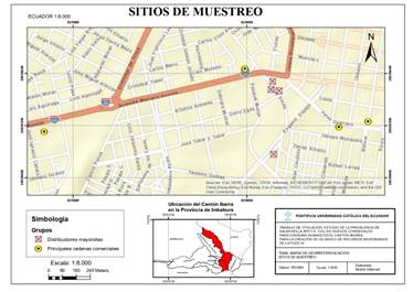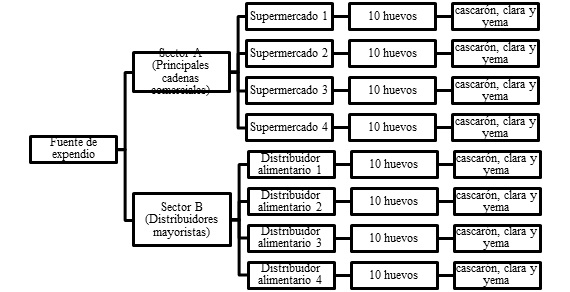 La investigación experimental se llevó a cabo en el cantón Ibarra provincia de Imbabura (Ecuador), en diferentes expendios correspondientes a cuatro distribuidores mayoristas y cuatro cadenas comerciales, como se detalla en la figura 2.